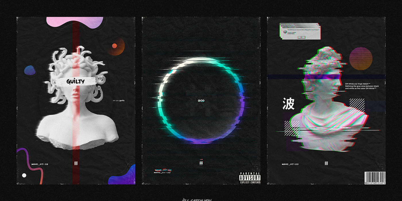 The ideia was to represent in the arts the abstract style with statues, glitches, geometric shapes and itens from retro culture following the Vaporwave segment.